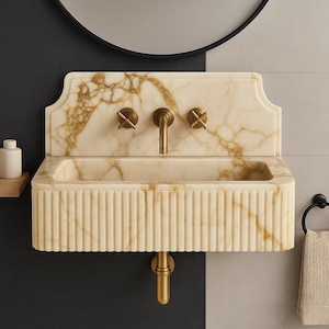 Transform your bathroom with this handcrafted Calacatta Gold marble sink, designed to be both functional and timelessly elegant. Carved from 100% natural Italian marble, every piece features unique veining, making your sink one-of-a-kind.