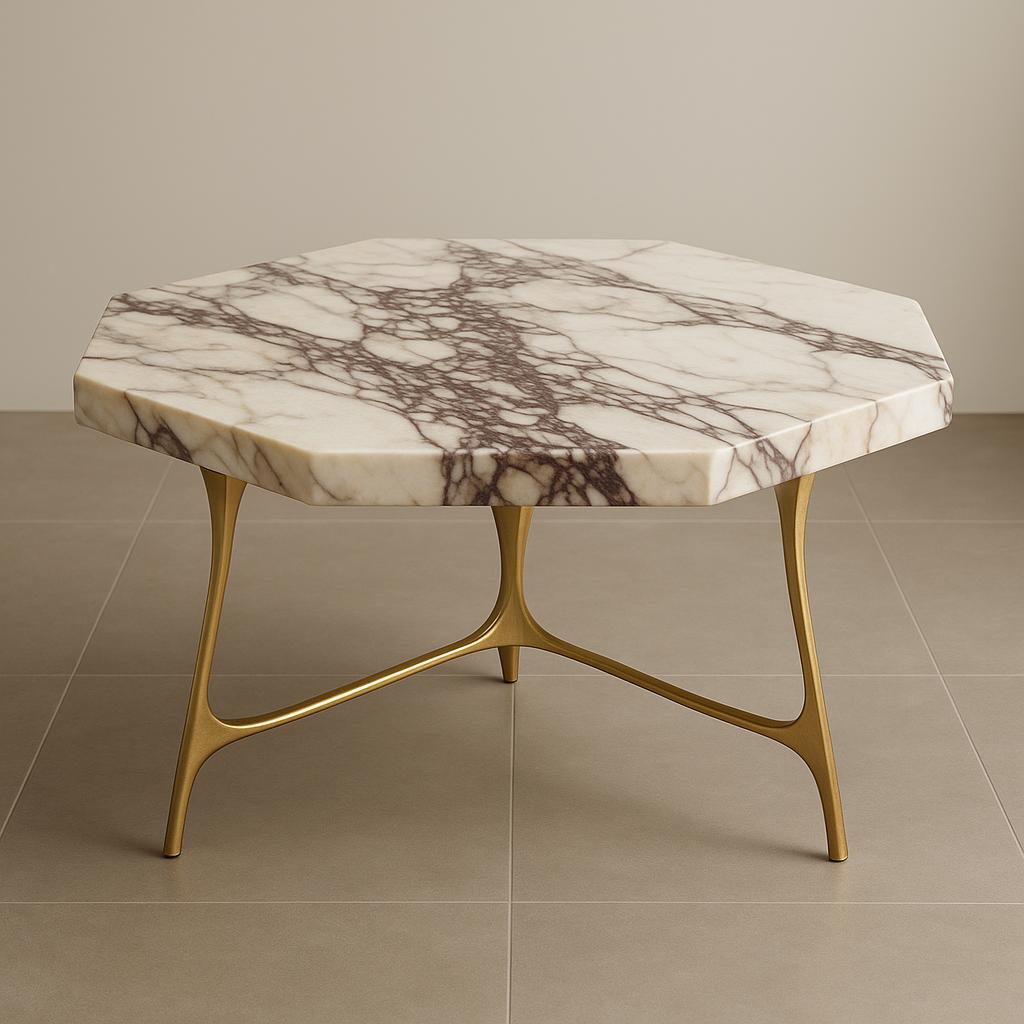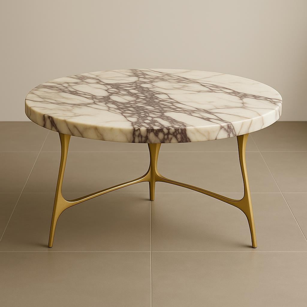 WE OFFER CUSTOM SIZES Elevate your living space with timeless elegance. This handcrafted coffee table combines the natural beauty of Calacatta Viola marble with the delicate sophistication of champagne gold steel legs — creating a piece that feels both powerful and graceful.