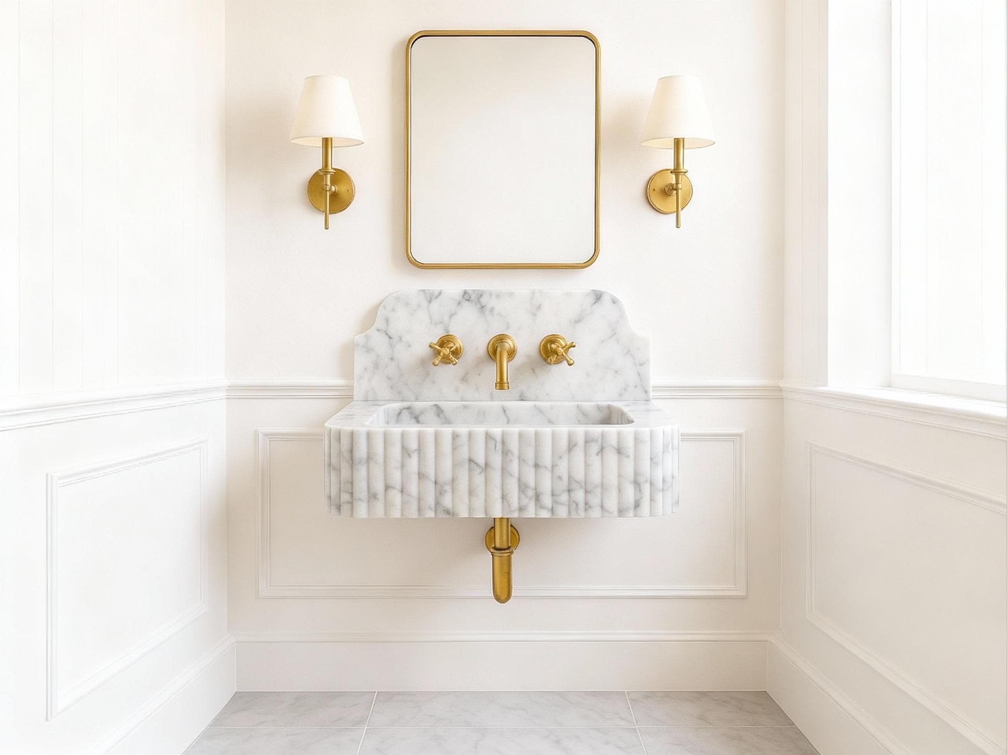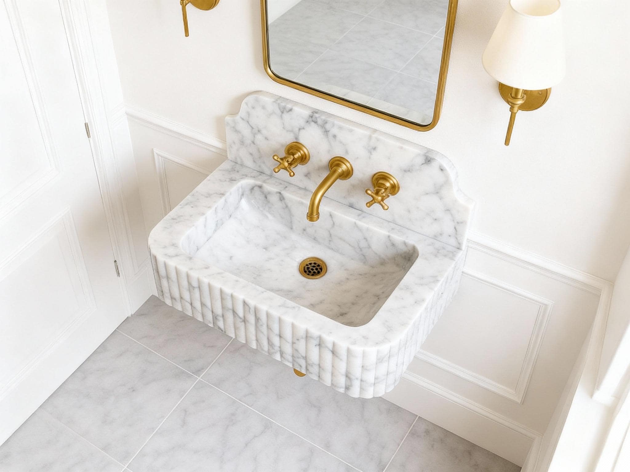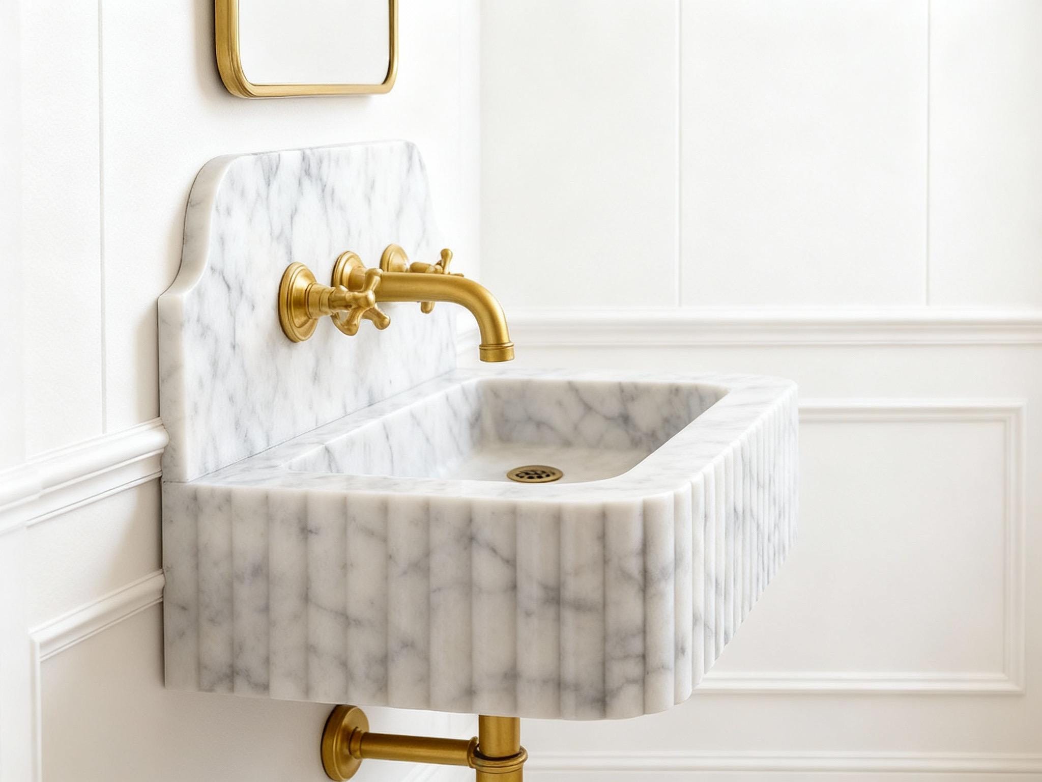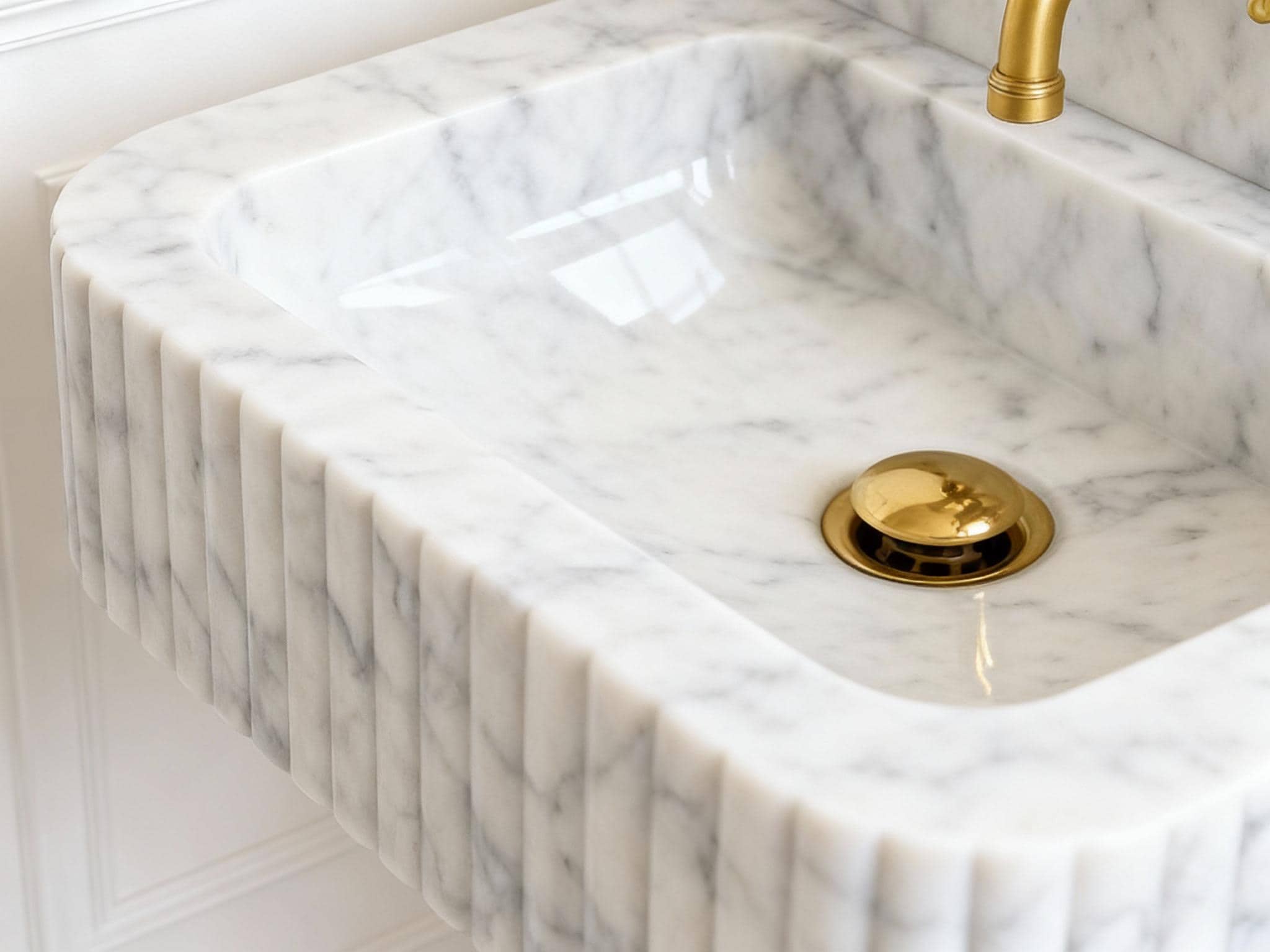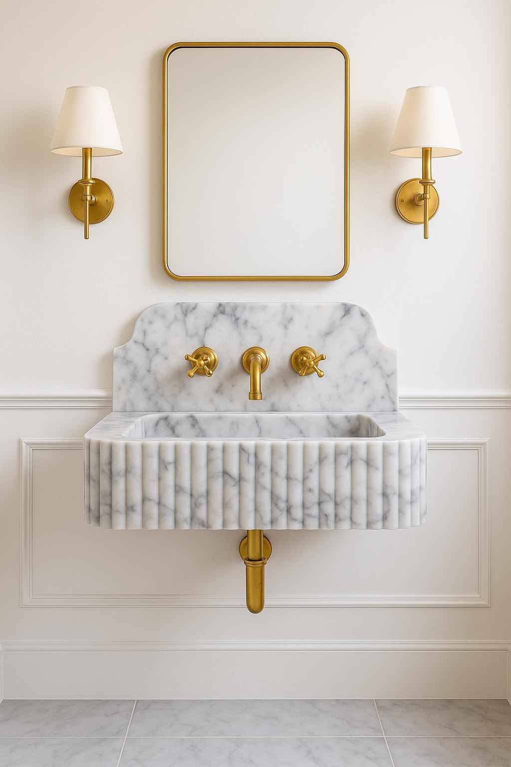 This handcrafted Carrara marble sink brings a soft, timeless touch to any bathroom or powder room. Each one is made from real Italian marble, with gentle gray veining that makes every piece unique. The fluted front and curved backsplash add character and elegance, creating a clean and classic look that never goes out of style. It’s designed to be wall mounted and pairs beautifully with gold or brass faucets. We can customize the size, backsplash height, and faucet holes to fit your setup perfectly. Every sink is carefully finished by hand, sealed, and polished to a smooth satin feel. Before shipping, we’ll send you photos of your exact sink for approval. All sinks are packed safely in wooden crates and shipped with insured express delivery. Because each piece is carved from natural stone, the veining and tones will vary slightly that’s what gives it its charm and authenticity. If you have a special size or faucet layout in mind, just message us! we will make it happen.